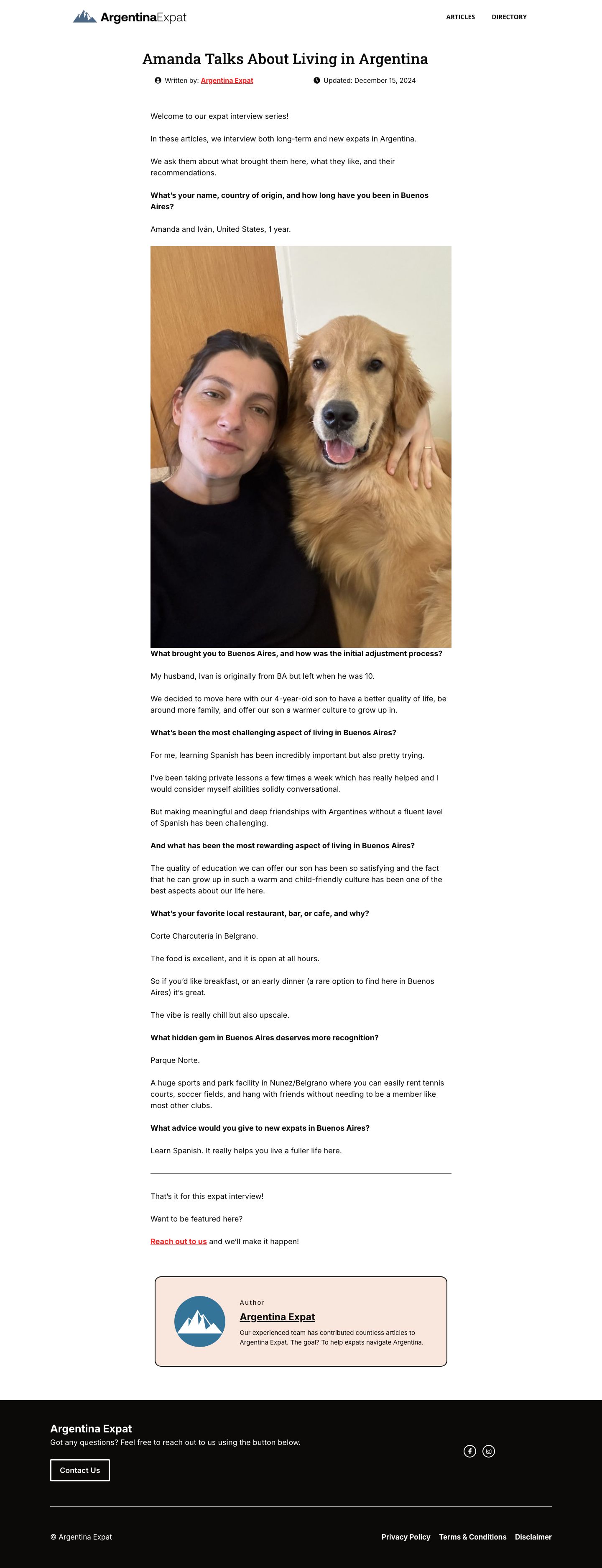 Amanda and her husband Iván moved to Buenos Aires with their 4-year-old son to embrace a warmer culture and be closer to family. Iván left Argentina at age 10, and the family returned seeking a better quality of life. Amanda shares insights on raising a bilingual child, navigating Spanish lessons, and the satisfaction of immersing their son in Argentine culture. Her top advice: learn Spanish - it opens up a fuller life in Argentina.